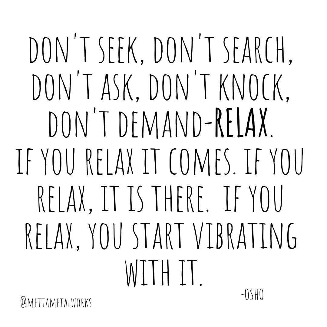 The big key for me in this one is the invitation to RELAX. To stop all the doing and effort. What’s it like just to BE? What do I have to feel for the mind to step out of the conditioned pattern of doing?